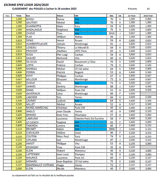Epée loisirs 2 à Cachan le 18 octobre 2025