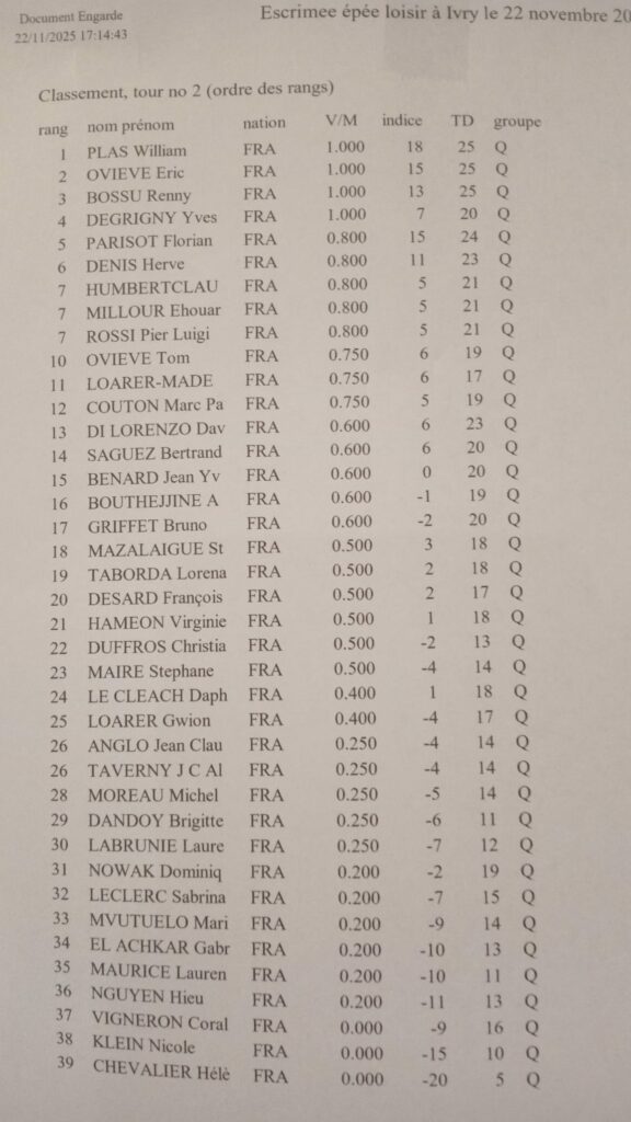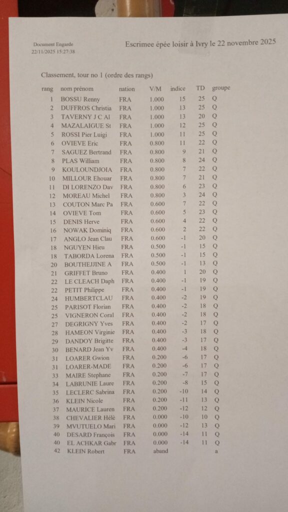 Les résultats des poules en attendant le classement officiel.